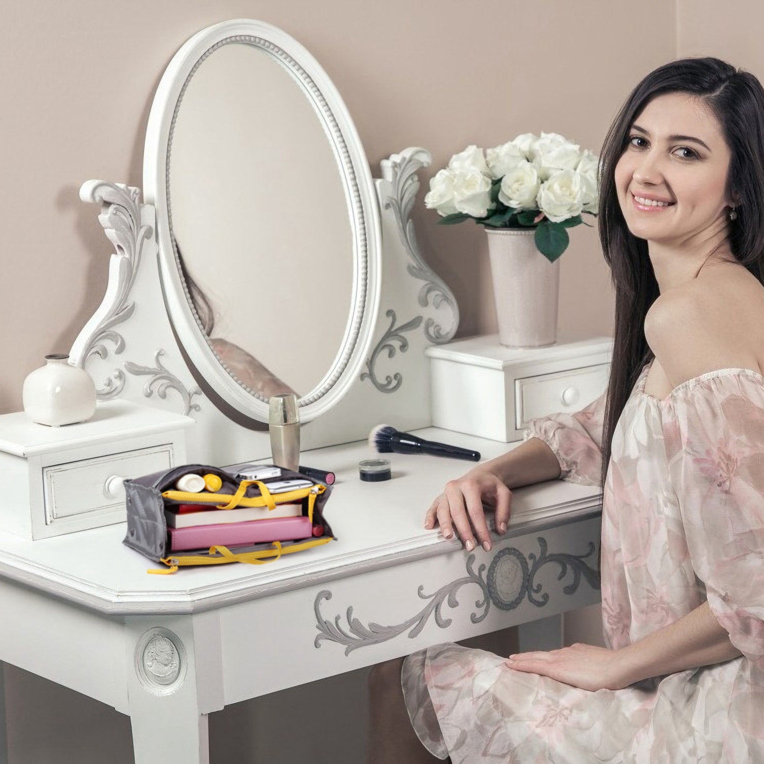 Women Lady Travel Insert Handbag Organizer Makeup Bags Toiletry Purse Liner With Hand Strap